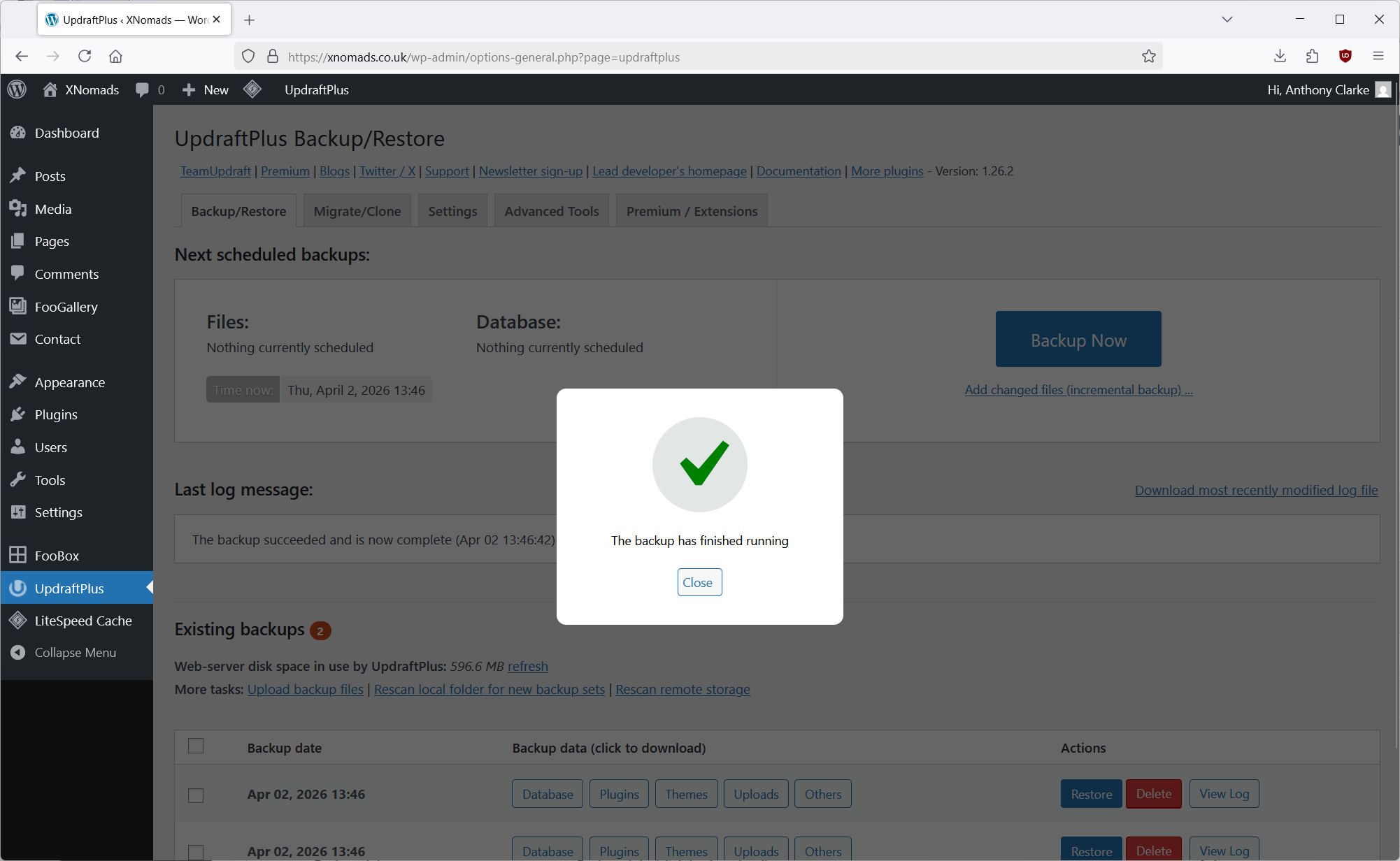 Your manual backup of WordPress is now done. You can view and download the backup files at the bottom of the page.